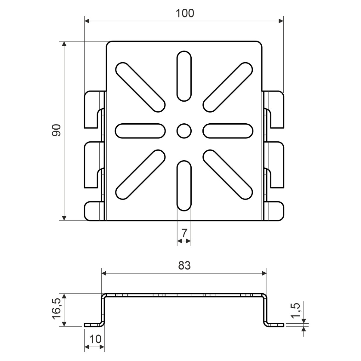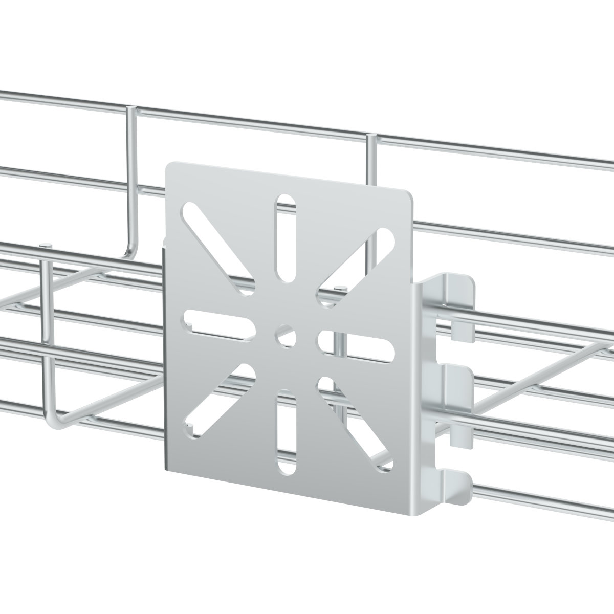Mounting plate serves to the assembling of electroinstallation boxes. It is fixed to the side plate of wire cable tray of side plate.
